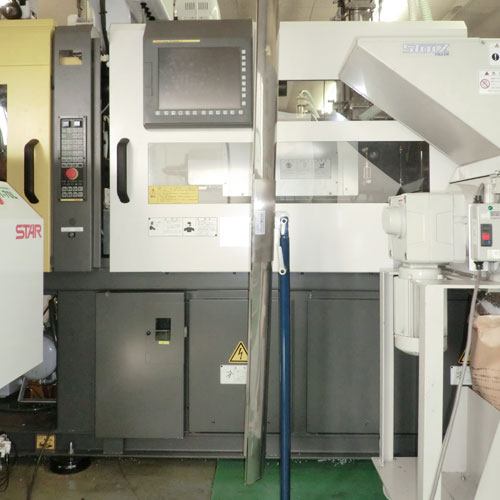 重い粉砕機が成形機安全ドア付近にある為、作業スペースが確保できない…